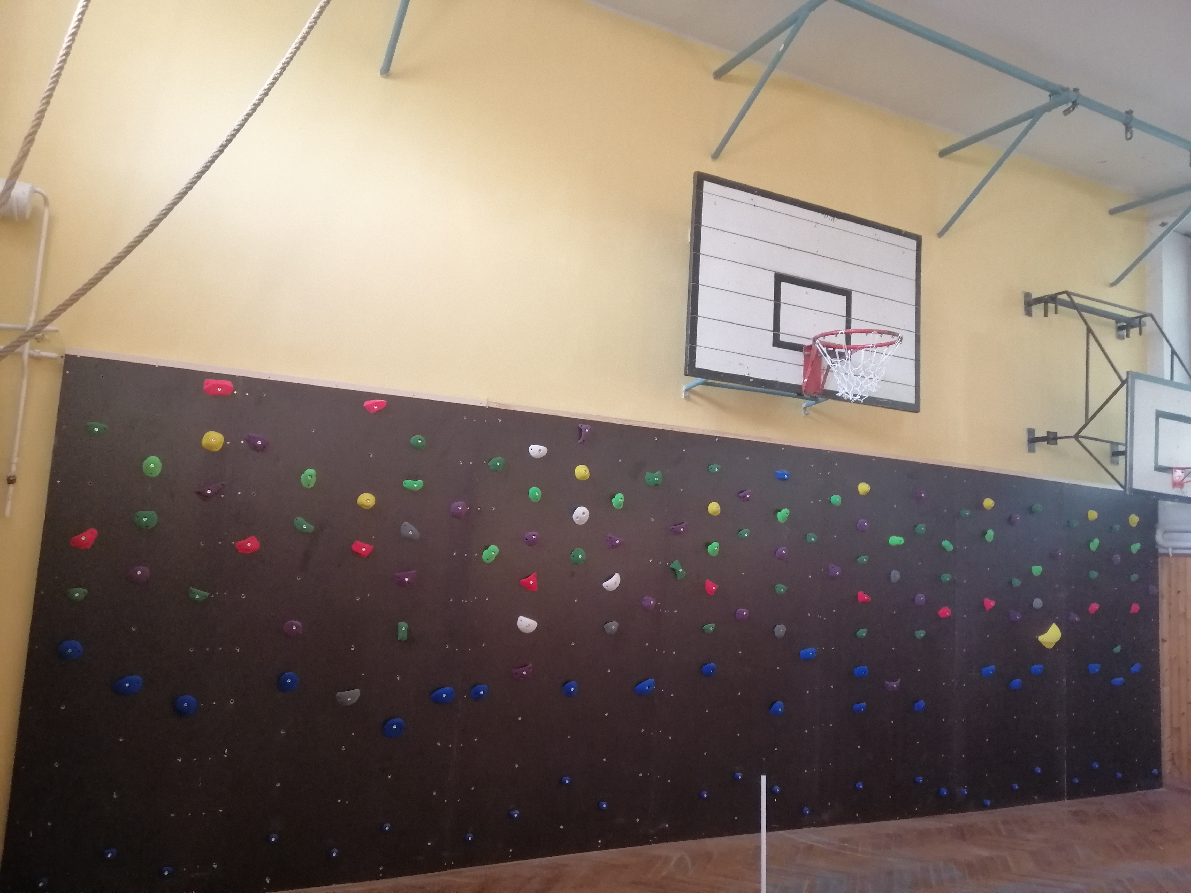 2019-ben újabb nagyszabású beruházást valósított meg alapítványunk szülői közösségünk felajánlásaiból. Évtizedes probléma a tornaterem lehangoló, rossz állapota. A fal süllyedése, az alulvilágítottság, a parketta és a nyílászárók állapota. Közösségépítő jótékonysági báljainknak minden évben egy kitűzött fejlesztési célja is van. A 2019-ben megrendezett bál bevételéből új sportolási lehetőség bevezetése valósulhatott meg. A gyermekek nagy örömére nyáron elkészült boulder típusú mászófalunk. Természetesen bonyodalmak akadtak bőven. Kiderült, hogy a megrepedt fal nem alkalmas a mászófal szerkezetének fogadására, a süllyedést meg kell állítani. Statikus bevonásával megtörtént a fal szerkezetének stabilizálása. A munkálatokat követően a terem két falának vakolatjavítása és festése is elkészült. A statikus és kivitelezési munkát, a vakolatjaítást, festést két volt tanítványunktól, Szigeti Domonkostól és Nemes Dánieltől kaptuk ajándékba. Támogatásuk anyagi értéke jelentős, erkölcsi értéke felbecsülhetetlen. Nagy öröm számunkra, hogy a szülői közösség támogatásán túl, egyéni szponzoráció is segítette a tornaterem fejlesztését. Bakos Zoltán a régi, elavult reflektorok lecserélésére modern LED reflektorokat adományozott iskolánknak, melyek értéke közel egymillió forint. Az üzembehelyezést a Székesfehérvári Tankerületi Központ soron kívül biztosította. Mászófal épült, falat erősítettünk, de ez a fal nem elválaszt, hanem összeköt. EZÚTON IS SZETETNÉNK KÖSZÖNETÜNKET KIFEJEZNI TÁMOGATÓINKNAK.